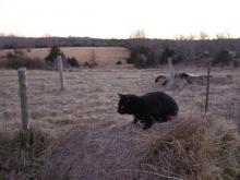 Shortly before I left the shed, they moved some hay bales into the yard in front of the shed.