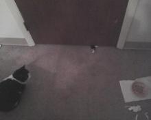 So on Caturday, Parker was taking a nap. The human saw Cyril outside, so he went out to say hello and maybe feed them.