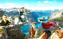 This past Caturday Breezy had an adventure in Norway. She even took some of her sissy furs and bro fur Tuffy. She got to see the fjords, meet some Viking Gods (Thor & Odin), go fishing, learn how the old Vikings fought Dragons and invaders, and even got to ride a reindeer. Here are a few pictures of her adventures.