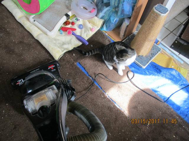 When I was little I thought it was my FURREND!! I climbed on it and played wif it. But then when I got older I learned the HORRIBLE truth! It's a MONSTER!! I know all the kitties in the world know about the scary VACCUUM MONSTER.... EXCEPT KEPHRI. Him LIKES IT!!
