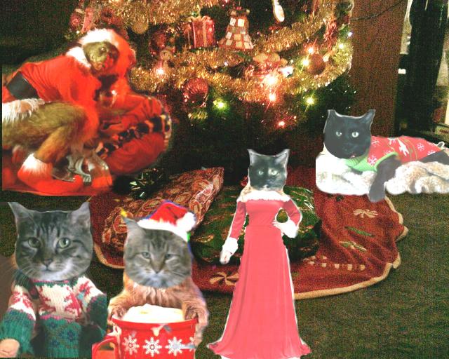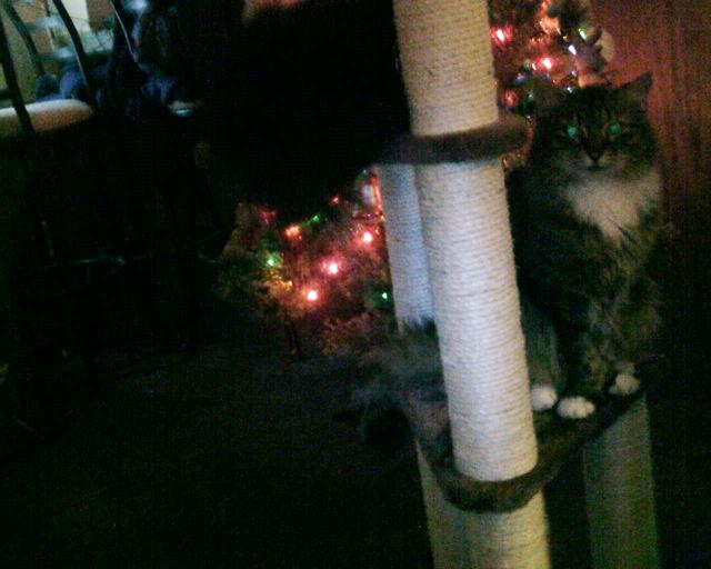 We got a neat kitty perch lookout from Santa Claws (aka Paws) and lots of tuna and catnip. Breezy even saved our Christmas gifts from the Christmas Grinch. Here are a few of our Christmas pictures. Love from Breezy Belle, Mommy and our kitty family.